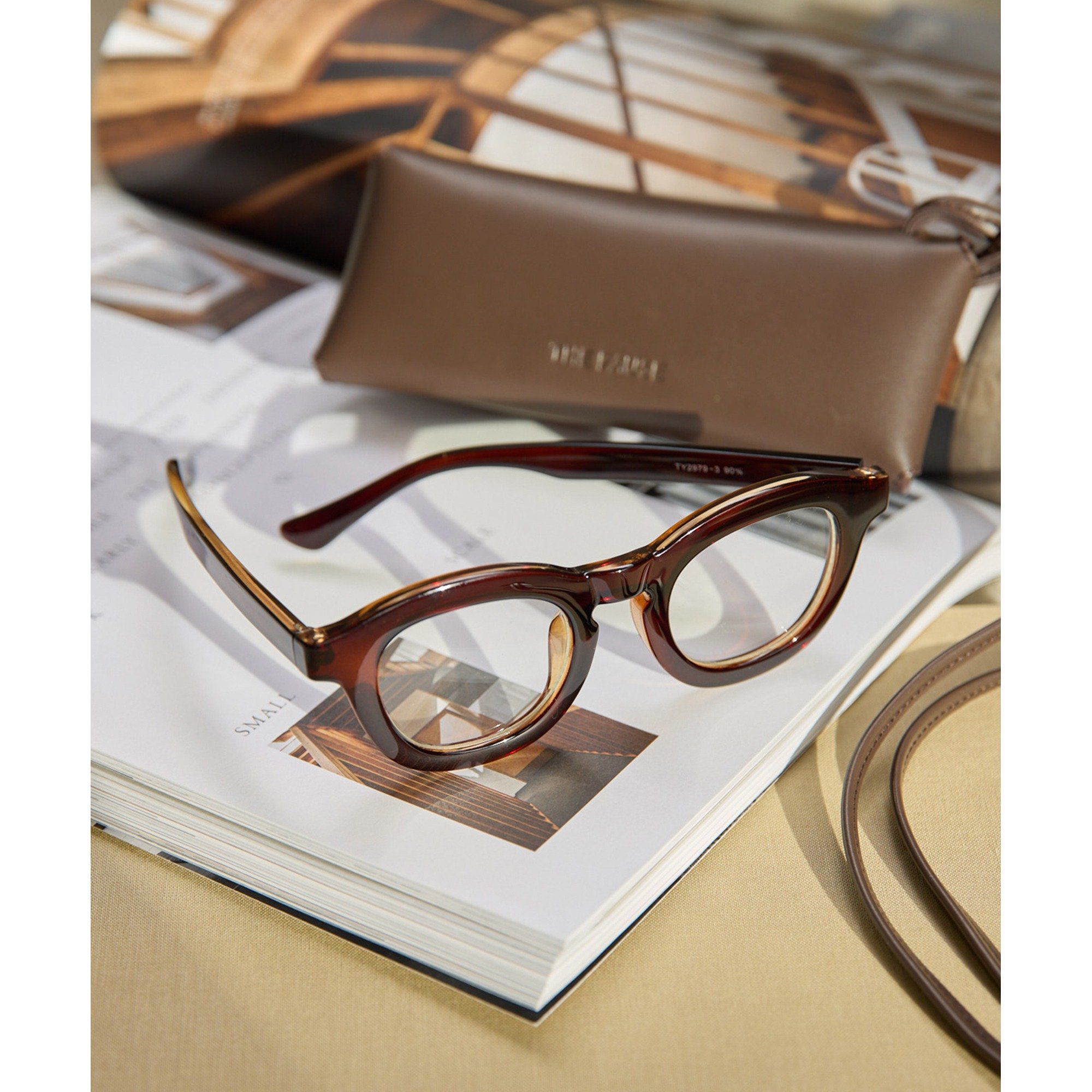 \スタッフ加藤(@wg_kato)監修のコラボアイテム!/【2026SS】旬のスタイルに導く、おしゃれ見え太フレームメガネ■太めのフレームがトレンド感のあるメガネ。■お顔の印象を強く見せ、小顔効果も期待できる太縁が特徴的なデザイン。■持ち運びにも嬉しい、THE PAUSEのロゴが入った合皮のケース付き。■99%UVカットなのも嬉しく、目元の紫外線対策をしながらおしゃれに楽しめるアイテム。【COLOR】ブラウン:太縁でもお顔に馴染みやすい上品なブラウン。【店頭発売日】2月7日(土)可視光線透過率:90%紫外線透過率:1%未満― THE PAUSE(ザ ポーズ) ―流行を自分らしい発想で切り取ってコーディネートを遊ぶ。色のグラデーション、ヴィンテージ感漂うワークアイテム・・・ ギャラリーのようなクローゼットの中から 組み合わせをデザインするようにファッションを楽しむ。そんな、自由なライフスタイルをもつ大人の女性にむけて 新しい感覚のカジュアルスタイルを提案します。【注意事項】・画像の商品はサンプルです。実際の商品と仕様、加工が若干異なる場合があります。また 、パソコンやスマートフォンのモニター環境などにより、色味が違って見える場合がございます。・店頭及び屋外での撮影画像は、光の当たり具合で色味が違って見える場合があります。商品の色味は、スタジオ撮影の画像をご参照ください。・入荷状況により、お届け予定が前後する場合があります。・お客様への発送が店頭販売より遅れる場合があります。・追加生産商品は、一部の店舗、通販で販売中の場合があります。予めご了承下さい。
