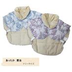 ●マイクロわた入りで保温性抜群<br>●体に触る内側はふわふわの肌触り<br>●前面のマジックテープで簡単装着<br>●袖口ゴム付で着けていても気になりません。<br>●首元から背中までのゆったりロング仕様<br>●サイズ(バスト) 79×94cm<br>●品質 ポリエステル100%<br>●カラー:ブルー・パープル