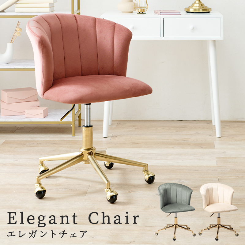 チェア 回転 昇降 キャスター 高さ調節 ベロア ピンク アイボリー グレー 大人可愛い おしゃれ 韓国 インテリア
