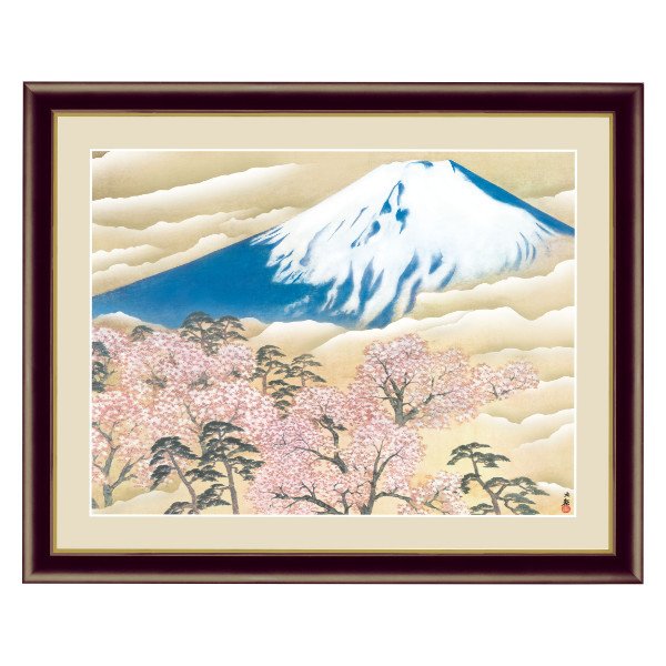 絵画 『富士と桜図』 34×42cm 横山大観 1942年頃 額入り 巧芸画 インテリア ( 壁掛け ポスター アートフレーム アートポスター 絵 )