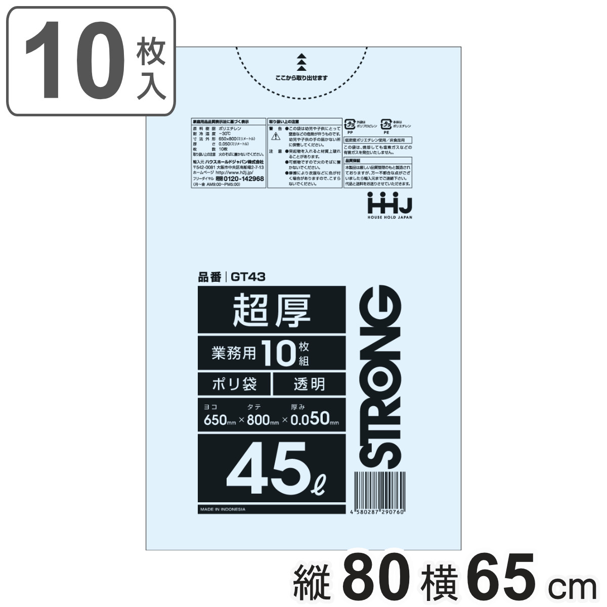 ジャパックス 業務用 45L 透明 極厚口 10枚