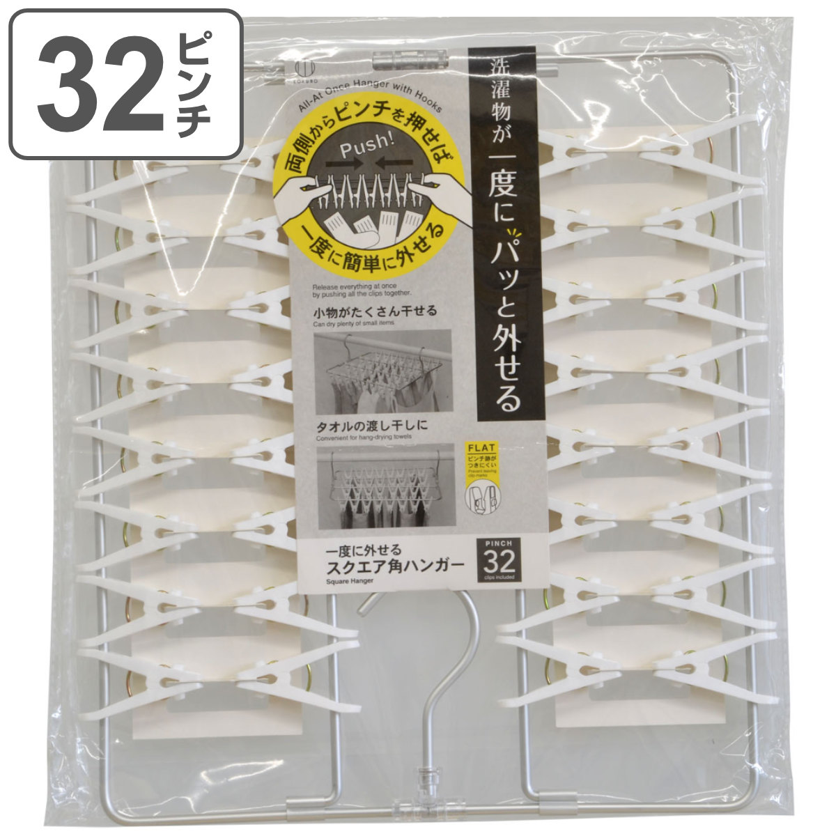 洗濯ハンガー 一度に外せる スクエアピンチハンガー 32ピンチ ( 洗濯 ハンガー スリム ピンチ 洗濯ばさみ コンパクト )